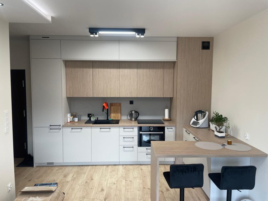Zabudowa sprzętów AGD – ukrycie sprzętu takich jak zmywarka, lodówka czy mikrofala w zabudowie daje wrażenie porządku i estetyki. To także sposób na uzyskanie jednolitego, minimalistycznego wyglądu.